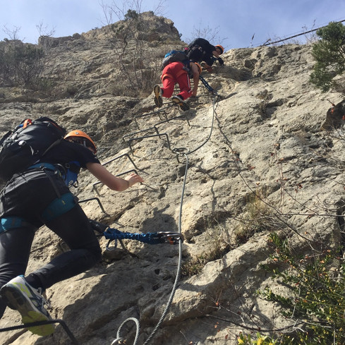 Alors que les nuages et la pluie étaient annoncés un peu partout dans la région, nous avons parié sur la Viaferrata de la Grande Fistoire pour passer notre dimanche. L'occasion pour un groupe d'adultes en cours d'escalade depuis septembre 2016 de se tester et de découvrir la pratique de la Via.